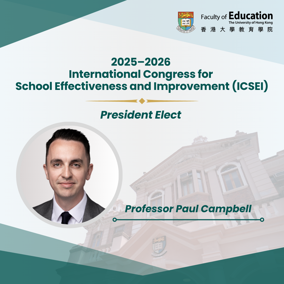 Professor Paul Campbell, Assistant Professor of our Faculty, has been elected President of the International Congress for School Effectiveness and Improvement (ICSEI).