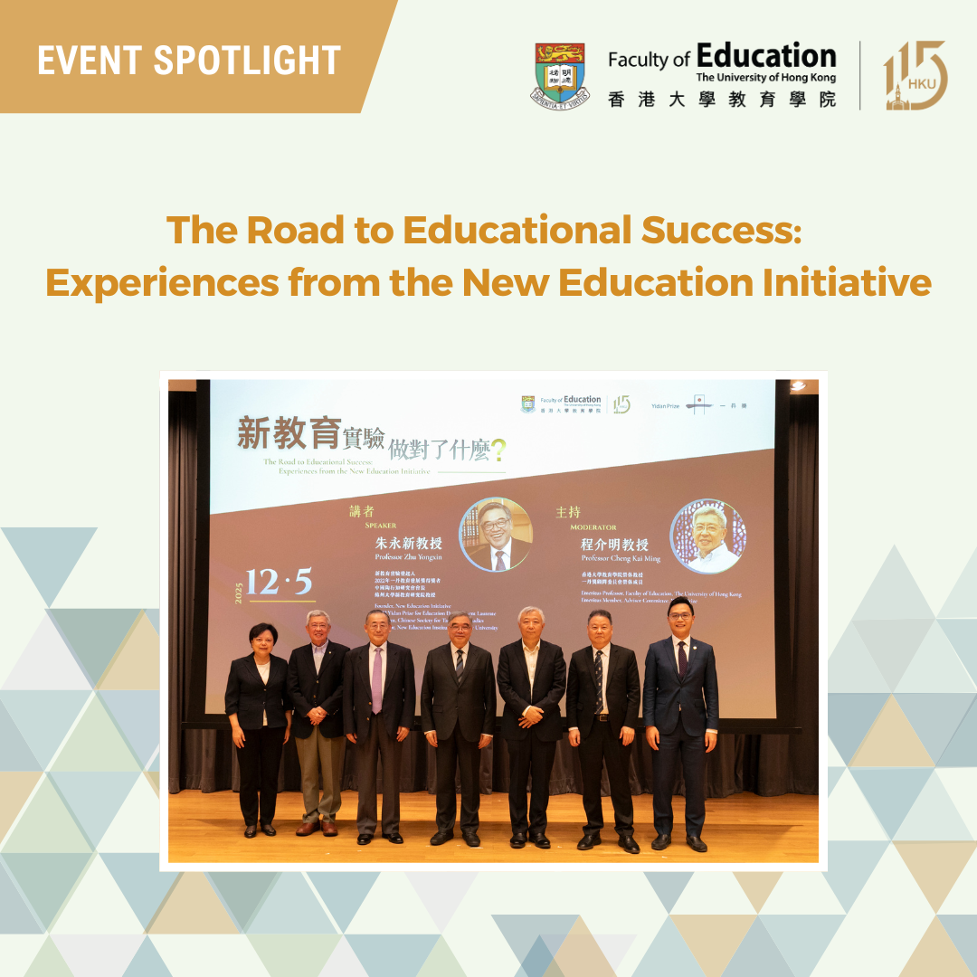 The HKU Faculty of Education and the Yidan Prize Foundation jointly hosted a lecture titled “The Road to Educational Success: Experiences from the New Education Initiative” on December 5. The event brought together international scholars, educators, local policymakers, students, and community members for a thought-provoking session. The speaker, Professor Zhu Yongxin — one of China’s most influential contemporary educators, the 2022 Yidan Prize for Education Development Laureate, and Founder of the New Education Initiative (NEI) — shared practical insights drawn from his two decades of work advancing educational equity and inclusion, and explained how the NEI has transformed education in China through action.